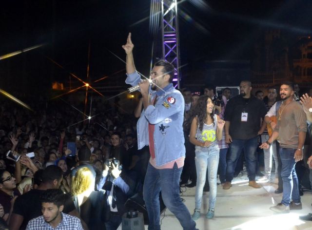 والتقط الطلاب عدد كبير من الصور السيلفي مع ساموزين ، الذي قدم أشهر أغنياته ومنها "انت عاوز مني ايه" و"تعالي بس".