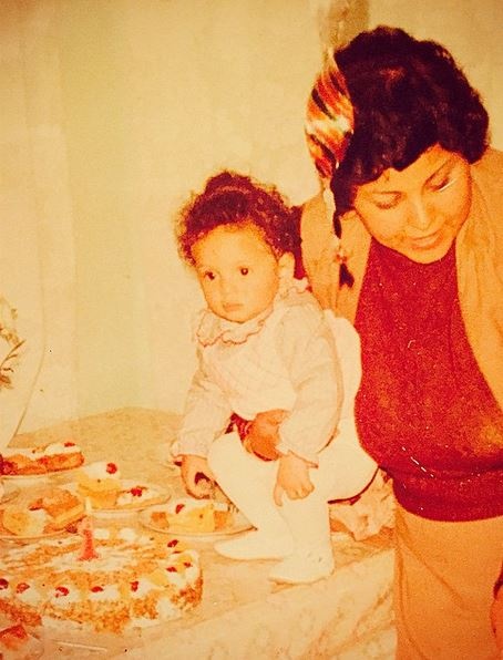 وعلّقت آمال على الصورة التي التقطت عام 1986 قائلة: "أول عيد ميلاد في حياتي على الإطلاق مع أفضل أم".