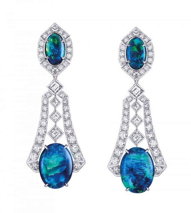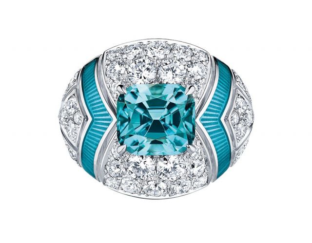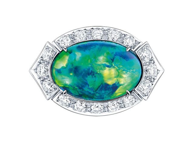 هذا الإصرار على الخفة يتناسق مع الجواهر غير الاعتيادية الموجودة في مجموعة Louis Vuitton السادسة للمجوهرات الراقية. بالفعل، نجد بينها تورمالين ParaIba بوزن 32 قيراطاً يسطع بقوة للتناقض مع الأوبالين الأسود، والزمرد الأخضر، وكذلك الأوبالين الأوسترالي بوزن 30 قيراطاً المستخرج من مناجم Lightning Ridge الفخمة، والذي يتعدى لمعانه طول الشكل المثلث مثل حمرة شفق متوهجة.