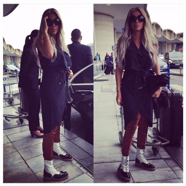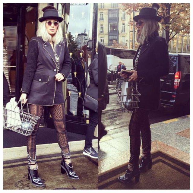 أما في الإطلالة الثانية فانتعلت حذاء عالي الساق خاطفاً للأنفاس أيضاً من Chanel...