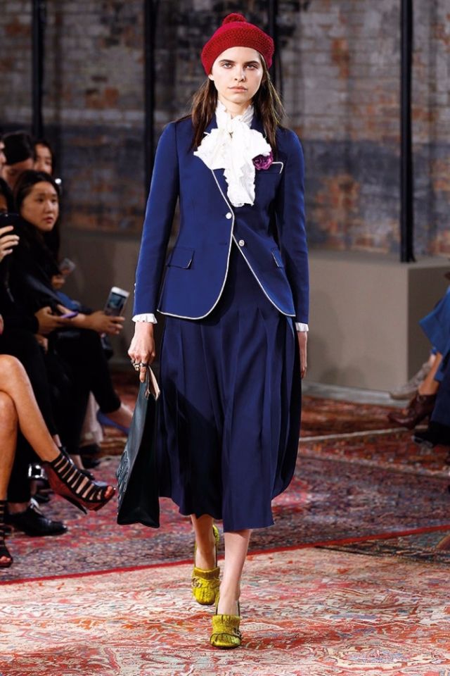 بالفعل، وصلت التنانير المثناة إلى تحت الركبة، بالترافق مع أحذية من الساتين الخردلي اللون وبلوزات مخرمة مزينة بقطع متناقضة.