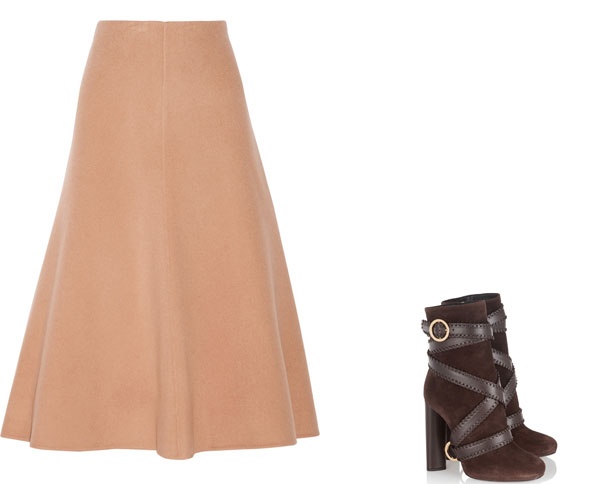 لإطلالة أكثر كلاسيكية، يمكنك تنسيق التنورة الواسعة تحت الركبة مع حذاء بساق نحو الكاحل، وتذكري دائماً أن بإمكانك توحيد لوني الحذاء والتنورة لإطلالة أكثر رشاقة.