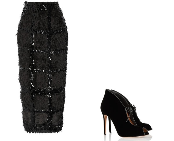 أما التنورة الضيقة الطويلة فارتداؤها مع حذاء بالساق العالية قد يبدو بشعاً وغريباً، لذا يمكنك اختيار حذاء بساق نحو الكاحل ولكن مفتوح من الأمام كالذي أخترناه لك.