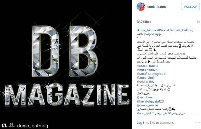أعلنت الفنانة المغربية دنيا بطمة على صفحتها على "انستغرام" عن إصدار مجلة باسمها بعنوان "مجلة دنيا بطمة"، والتي من المفترض أن تضم جميع أخبارها وآخر أعمالها الفنية.