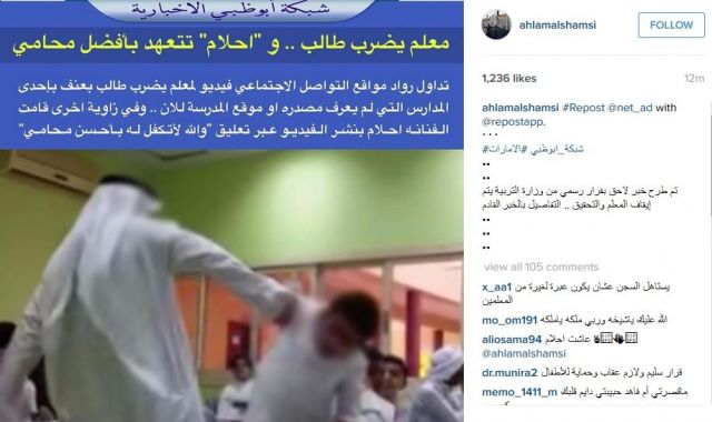 بعد الضجة الكبيرة التي أحدثتها النجمة الاماراتية أحلام ودفاعها الشرس على الطفل الذي يضربه أحد الاساتذة في الصف، عادت ونشرت خبراً أكدت فيه انه تم فصل المدرس.
