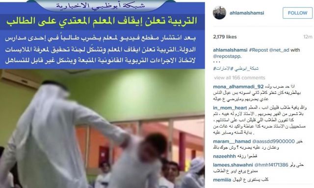 ونشرت أحلام على "انستغرام" صورة الطفل والاستاذ مع تعليق "تعلن وزارة التربية ايقاف المعلم وتشكل لجنة تحقيق لمعرفة الملابسات لاتخاذ الاجراءات التربوية القانونية المتبعى ربشكل غير قابل للتساهل".