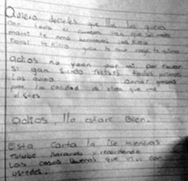 وترك لويس رسالة توجّه بها الى عائلته قائلاً: "الوداع، أرجوكم لا تبكوا من أجلي. أحبّكم كلّكم الّا انّني قمت بذلك بسبب نوعيّة الحياة السّيئة التّي أمّنتموها لي".