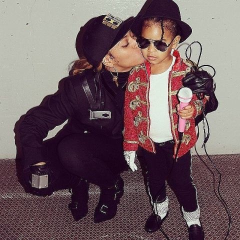 وأيضاً النجمة العالمية بيونسيه، نشرت صورتها مع ابنتها التي اختارت ملابس مايكل جاكسون لتتنكر في الهالوين.