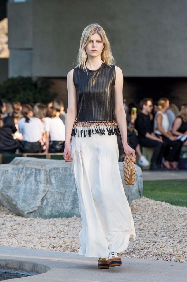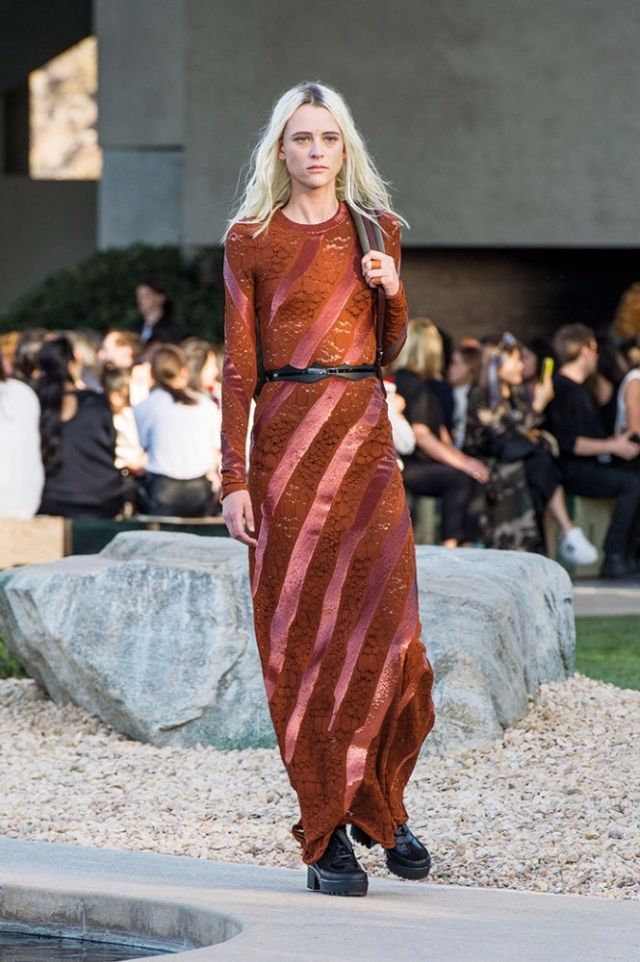 تجولنا قبل بداية العرض بين المشاهير. في داخل المنزل، المساحة مفتوحة. كنا أول من لمح كانيي ويست ثم دخلت كاترين دونوف. بعد دردشة سريعة مع سيلينا غوميز، راقبنا شارلوت غينسبورغ تتموضع للكاميرات ثم ميشيل وليامز وماريسا تومي. تنفتح هذه المساحة على حديقتين. في الحديقة الخلفية التي ترتفع فوق بالم سبرينغز وتطلّ عليها، انطلق العرض بظهور محاربات الصحراء المحيطة بنا، بدت الغيوم قريبة وناصعة البياض.