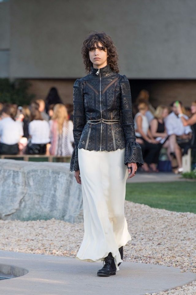 وقد ظهرت أحذية حراس الغابات «الراينجر» مع الفساتين الضيقة، كأن العارضات يجهزن أنفسهن لتسلّق هضاب بالم سبرينغز. فالمنظر الطبيعي ينسجم مع ولادة مجموعة أزياء للرحلات. هنا لا يزال يسيطر غموض لوس أنجليس، وتتأثر هذه الأرض الغريبة الهادئة والشرسة في الوقت نفسه، بأحلام هوليوود. هي أرض مغنطيسية يمتزج فيها جوهر الجاذبية برغبة غامضة في الأسلوب القوطي. أرض مذهلة تتحدى الهندسة المعمارية فيها طبيعتها القابلة للاهتزاز. وامرأة هذه المجموعة من لوي فويتون تشبه وصفنا للمكان الذي احتضن العرض، تبدو هادئة وحكيمة لكن تظهر قوتها الداخلية وعنادها الجميل ورغبتها في إثبات وجودها واستعدادها لمواجهة التحديات. هي امرأة عميقة، يصعب كشف أسرارها.