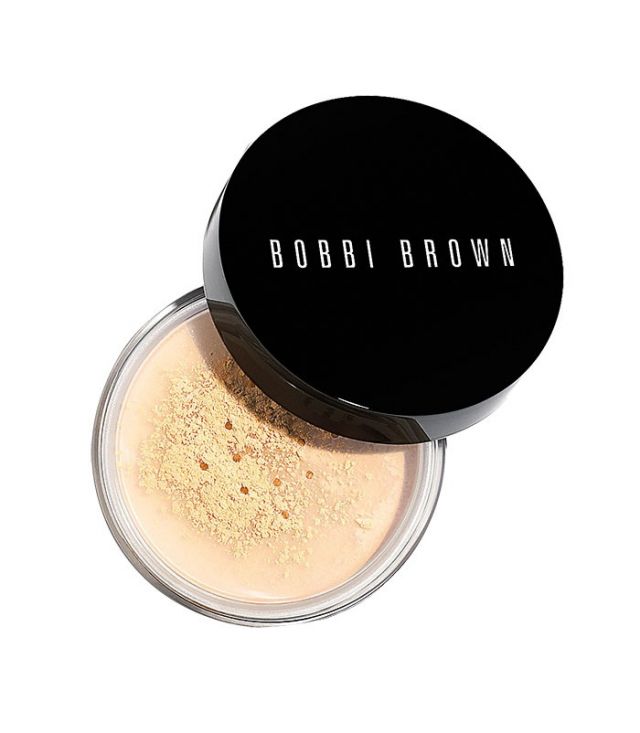 حضّري بشرتك باستعمال ممهّد الأساس الذهبي والمعزز للإشراق Guerlain L'Or Make-Up Base، ووحّدي لون البشرة بواسطة كريم الأساس الساتيني Giorgio Armani Luminous Silk Foundation. ثم ضعي لمسة من البودرة الطلقة والشفافة Bobbi Brown Sheer Finish Loose Powder فوق الجبين والأنف والذقن.