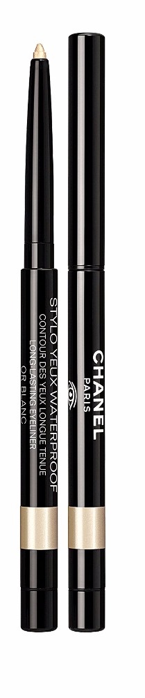 ● كحّلي الجفن الداخلي للعين بقلم الكحل الأبيض الصدفي Chanel Long-Lasting Eyeliner in Or Blanc.