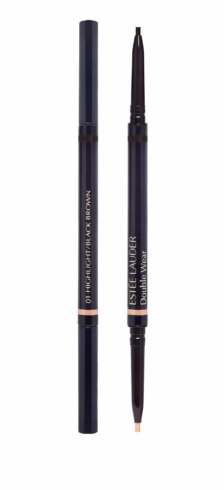 ● صحّحي رسمة حاجبيك واملئي الفراغات بين الشعيرات بواسطة القلم المخصص لذلك Estee Lauder Double Wear Stay-in-Place Brow Lift Duo Black Brown.