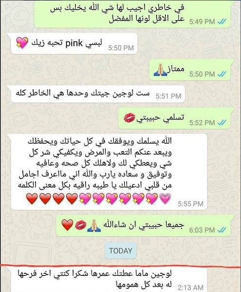 وتابعت "خبرتني قبل امس اي كثر تحبني من خلال مكالمة جميلة لطيفة غمرتني بمشاعرها واحاسيسها الصادقة.. وسبحان من ادخل حبها في قلبي.. فكان أقل شي أقابلها وجها لوجه".