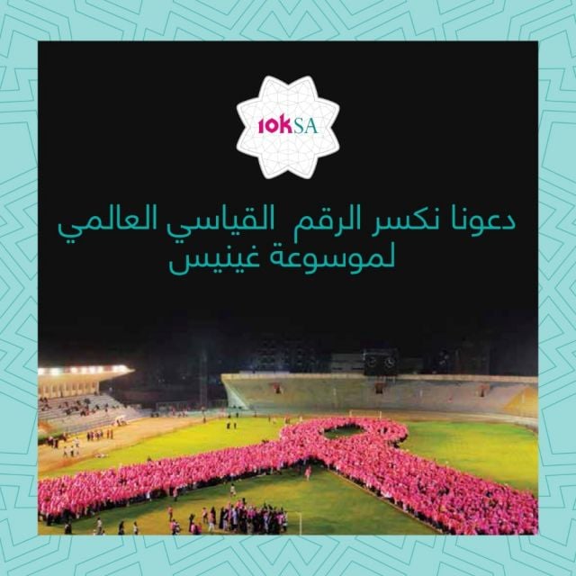 تدعو مبادرة 10ksa الصحية الشاملة، والتي تركز على سرطان الثدي، عشرة آلاف امرأة للانضمام إليها في جامعة الأميرة نورة في الرياض، في السعودية، وذلك لتشكيل أكبر شريط وردي بشري، ودخول موسوعة «غينيس» للأرقام القياسية، من خلال هذه العملية.
