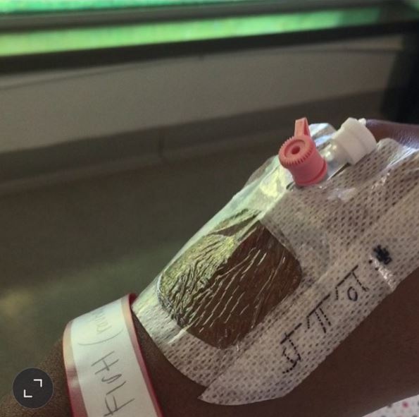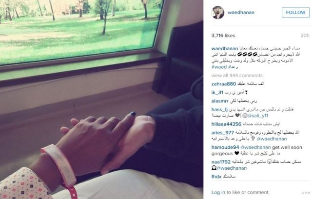 ونشرت وعد صورة ليدها من المستشفى وعلقت قائلة: "مرحباً حبيت أقلكم غايبة لأني عملت عملية بكتفي وتعبانه ادعولي شكرا".