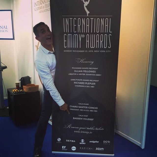 بالصور - باسم يوسف يعلن تقديمة لحفل جوائز "إيمي" على طريقته