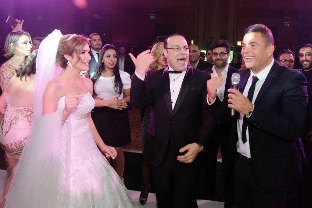 بالصور - رغم خلافاته مع الشركة عمرو دياب في زفاف مسؤول بروتانا