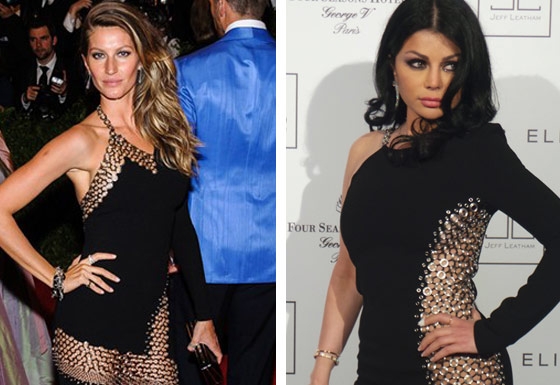 ارتدت النجمة هيفا وهبي خلال زيارتها الأخيرة لباريس ولحضور حفلة المصمّم اللبنانيّ إيلي صعب فستاناً باللون الأسود مع تفاصيل من السلاسل المعدنيّة. وكانت العارضة جيزيل بوندشن قد ارتدت الفستان نفسه تقريباً لحضور حفل The Met Ball. من برأيكم الأجمل؟