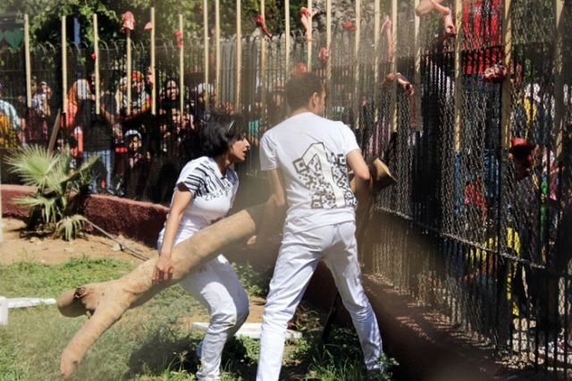 قفص في حديقة الحيوانات يجلس فيه (رجل وامرأة)، ويقف على باب القفص حارس الحديقة ومعه عصا كبيرة، يقدم إليهما قطعاً من اللحم المدمم. هذا نوع مختلف من الفن يطلق عليه «فن الأداء»، قدمته الفنانة سماح حمدي إلى شريحة مختلفة من الجمهور في حديقة الحيوانات المصرية.
