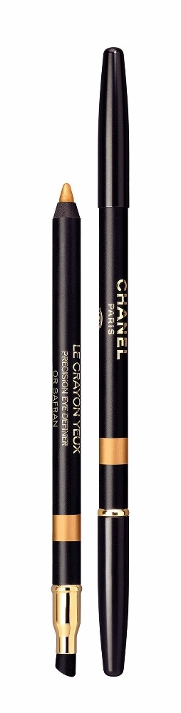 • الصقي الرموش المستعارة من M.A.C، وحدّدي جذور الرموش العليا بالكحل المائي الأسود الطويل الثبات Bobbi Brown Long-Wear Gel Eyeliner in Caviar Ink. مدّي الخط المرسوم خارج حدود العين بقليل في شكل موازٍ لطرف الحاجب. ثمّ كحّلي الجفن الداخلي للعين بالقلم الأسود Urban Decay Waterline Eyepencil in Legend، وخط الرموش السفلية باللون الذهبي الدافئ Chanel Le Crayon Yeux in Or Safran.