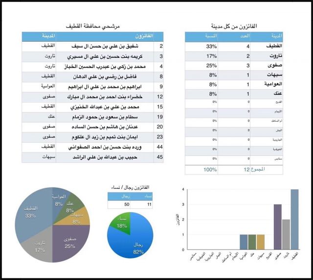 أعلن أمين منطقة مكة المكرّمة رئيس لجنة الانتخابات في مكة أسامة البار عن فوز سالمة بنت حزاب العتيبي بمقعد عن إحدى دوائر محافظة مدركة التابعة لمنطقة مكة. وفي محافظة جازان، أُعلن عن فوز عيشة بنت حمود علي بكري بأحد المقاعد، فيما حصلت مرشحة واحدة في حائل على مقعد وخسرت في المقابل 37 مرشحة. وأظهرت النتائج فوز ثلاث سيدات في انتخابات بلديات منطقة الرياض، وهن: هدى عبدالرحمن الجريسي، وجواهر عثمان الصالح، وعلياء مكيمن الرويلي، فيما حصلت امرأة في الجوف على مقعد في الانتخابات البلدية. وأُعلن عن فوز مُرشحتين اثنتين بمقعدين في انتخابات منطقة القصيم، إحداهما الجوهرة بنت محمد بن يوسف الوايلي، الى جانب مشاعل السهلي وبدرية الرشيدي اللتين فازتا بمقعدين في مركز البطين (منطقة القصيم)، ونجحت منى العميري من محافظة البدع في منطقة تبوك في الفوز بمقعد في المجلس البلدي بعد خسارة مرشحات تبوك وبقية المحافظات باستثناء محافظة البدع. وفازت فرح العوفي بمقعد في المجلس البلدي في محافظة المدينة المنورة. وتعد محافظة الإحساء من المحافظات السبّاقة في إعلان فوز المرأة السعودية في انتخابات المجالس البلدية، إذ أفادت اللجنة المحلية للانتخابات فيها بتمكّن المرشحتين سناء الحمام، ومعصمومة عبد رب الرضا من حيازة مقعدين، فيما ذهب 32 مقعداً في المجلس البلدي للمحافظة إلى مُرشحين من الرجال. كما شهدت الانتخابات في محافظة جدة فوز امرأتين بمقعدين، حيث فازت رشا نجيب حفظي بمقعد عن الدائرة الثانية، فيما نالت الدكتورة لما عبدالعزيز السليمان مقعداً عن الدائرة الثامنة. «لها» تحدثت مع بعض المرشحات الفائزات في مختلف المناطق السعودية، وأطلعننا بدورهن على تجاربهن في العملية الانتخابية للمجالس البلدية في دورتها الثالثة.