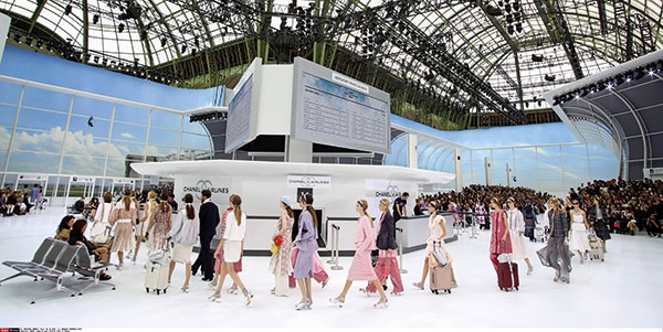 وبالعودة إلى عروض الأزياء، لا شك في أن لاغيرفيلد خطف الأنظار هذا العام في عرض شانيل لربيع وصيف 2016 حيث قدم ديكوراً غير متوقع. لطالما كانت عروض شانيل حدثاً بارزاً في أسبوع باريس للأزياء، لكنه كان استثنائياً هذا العام، فالتصاميم تكيفت تماماً مع موضوع المجموعة، وبدت منصة العرض نفسها مثل مطار أنيق. عرضت لوحة المغادرة مواقع مختلف عروض شانيل الأخيرة مثل سالزبورغ ودالاس، وكان هناك أيضاً مكتب لتسجيل التذاكر وعربات لنقل الحقائب. أما منصة العرض فامتلأت بالعارضات الشهيرات، وبينهن كندال جينير التي كان هذا العام مهماً جداً بالنسبة إليها إذ شاركت في كل العروض الرئيسية في باريس وميلانو.