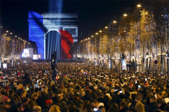 كذلك الامر في باريس، التي تخطت على الانفجارات والازمات السياسية التي تعاني منها، واحتفل الملايين بالقرب من برج ايفل والشونزليزي.