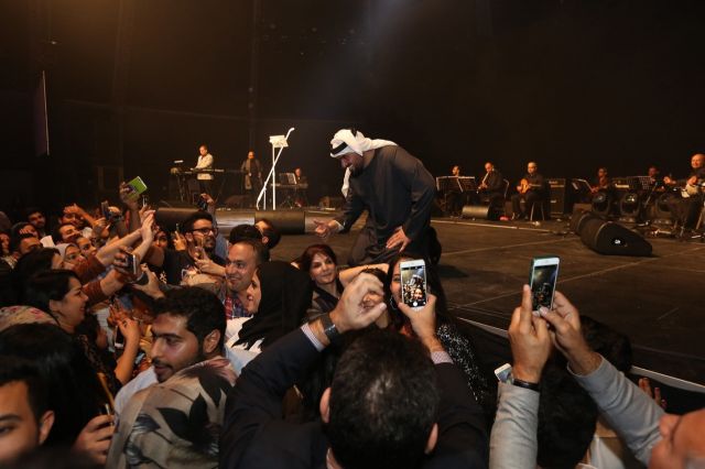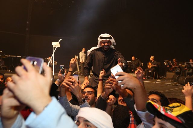 استقبل الجمهور الحاضر في قاعة دو في جزيرة ياس بإمارة أبوظبي بالإمارات، الفنان حسين الجسمي بالزغاريد والتصفيق المتواصل تعبيراً عن سعادتهم باطلالته عليهم في الحفل الذي إختتم به حفلات العام 2015.، وهو ما دفع الجسمي للتوقف عن الغناء عدة مرات من أجل التقاط الصور التذكارية و "السيلفي" مع الجمهور أمام المسرح، متجاوبا مع طلباتهم في كل مرة احتراما وتقديراً، وقام بالتصوير مع الأطفال والعائلات الحاضرة من مختلف الدول العربية والعرب المقيمين في أوروبا.