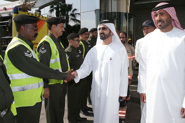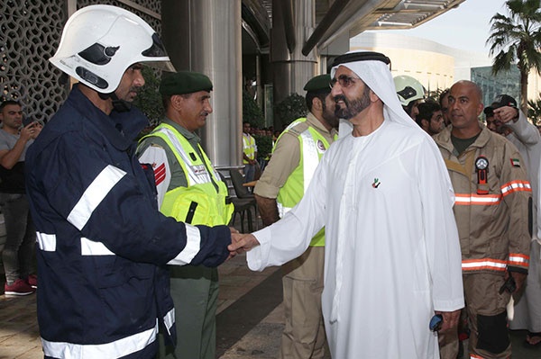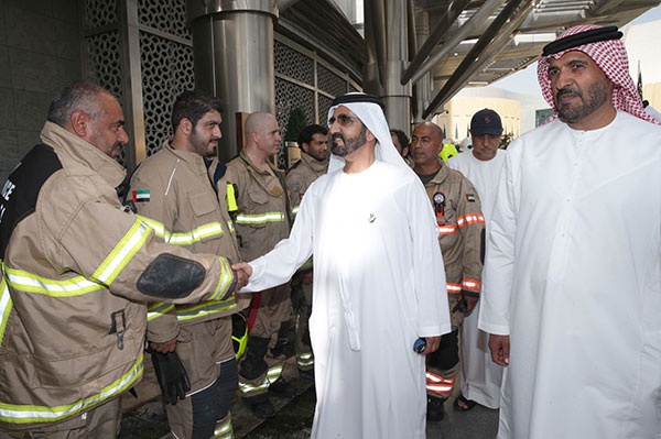 محمد بن راشد يشيد بشجاعة فرق الدفاع المدني في تعاملهم مع حريق فندق "العنوان"