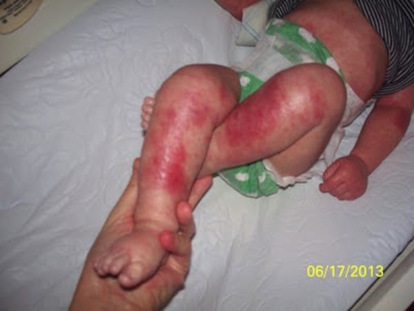 وبعد استشارة 35 طبيباً كلهم قالوا إنّ هذا الطفح أكزيما، وبعد تجربة علاج الكورتيزون، قررت ستيفاني عزل طفلها عن كل ما يحيط به لتضعه في حوض الاستحمام لأنّ المياه كانت تريحه وتخفف من شدّة الوجع.