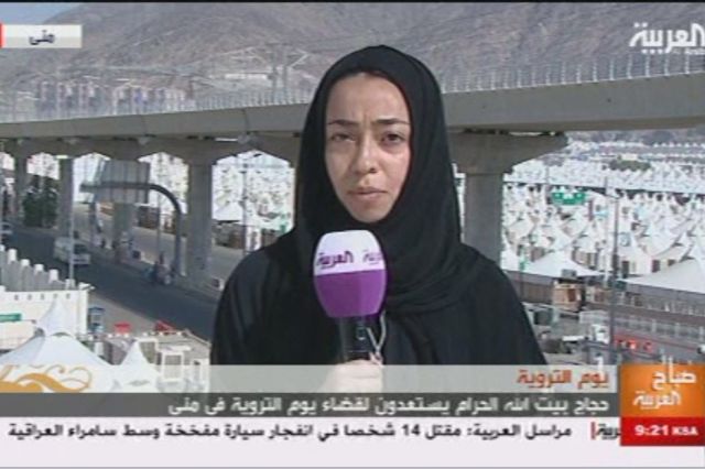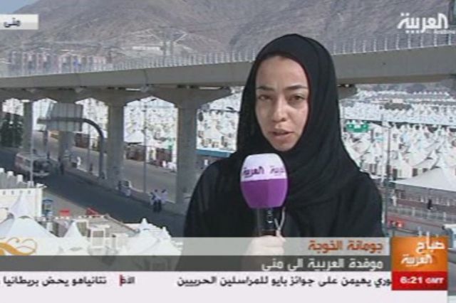 ظهرت موفدة قناة "العربية" جمانة خوجة على الشاشة لأول مرة لها من المشاعر المقدسة، لتتحدث عن الأجواء في مِنى قبل توافد الحجاج إليها لقضاء يوم التروية. كما أعدت جمانة تقريراً حول دور الكوادر الطبية النسائية السعودية في خدمة الحجيج. وستستمر موفدة "العربية" في الظهور خلال الأيام القادمة ضمن برنامج "صباح العربية"، وعبر مختلف النشرات ضمن التقارير الإخبارية الميدانية. وتُعدّ هذه التجربة الأولى لمراسلة سعودية في تغطية موسم الحج من المشاعر المقدسة مباشرةً.