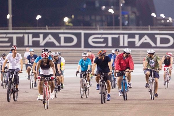 والتقى المنظمين والحضور وتبادل الحديث معهم حول أهمية إقامة نشاطات رياضية. بعدها انطلق مستقلا إحدى الدراجات الهوائية التي تقدمها حلبة ياس للجمهور على مضمار الحلبة الذي يبلغ طوله 5.5 كلم، وقطع مسافة المضمار مرتين.