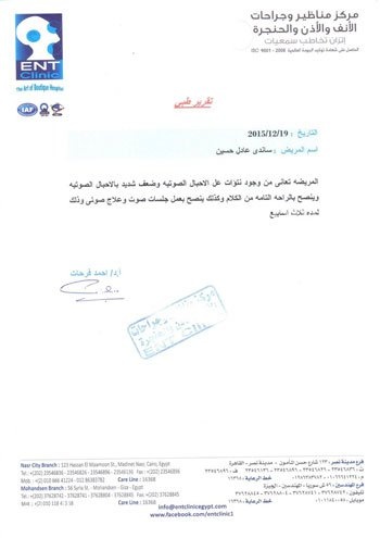 وقال محمد عادل شقيقها إن شقيقته تعاني من نتوءات على الأحبال الصوتية وضعف شديد بالأحبال الصوتية كما أنها تعاني من التهاب مزمن في المعدة مع ارتجاع بالمريء مما يتطلب عمل فحوصات ومنظار معدة ومرىء لتشخيص الحالة بدقة وهو ما أجبرها على السفر لألمانيا لعمل تلك الفحوصات.