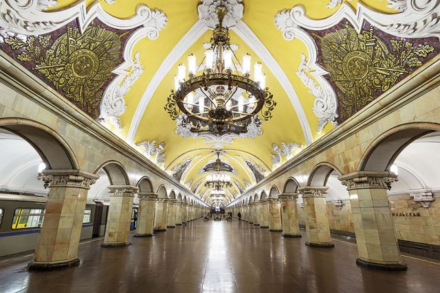 فأعمدة محطة الانتظار الرخامية وقبّتها الصفراء، وجدارياتها الفسيفسائية، وثرياتها تمنح الناس المنتظرين في حضنها الإحساس بأنهم يجولون في أحد القصور الباروكية لعهد القياصرة.