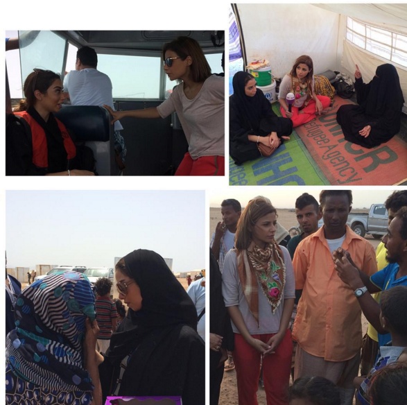 بالصور - مهيرة عبد العزيز وبلقيس في زيارة مخيمات اليمنيين