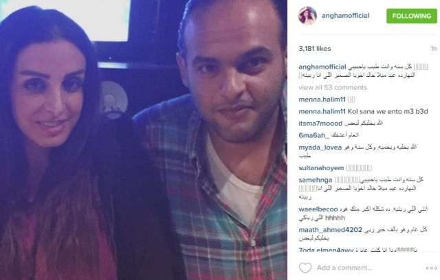 ونشرت عبر حسابها صورة جمعت أنغام وشقيقها، معلقةً: "كل سنه وانت طيب ياحبييي النهارده عيد ميلا خالد اخويا الصغير اللي انا ربيته".