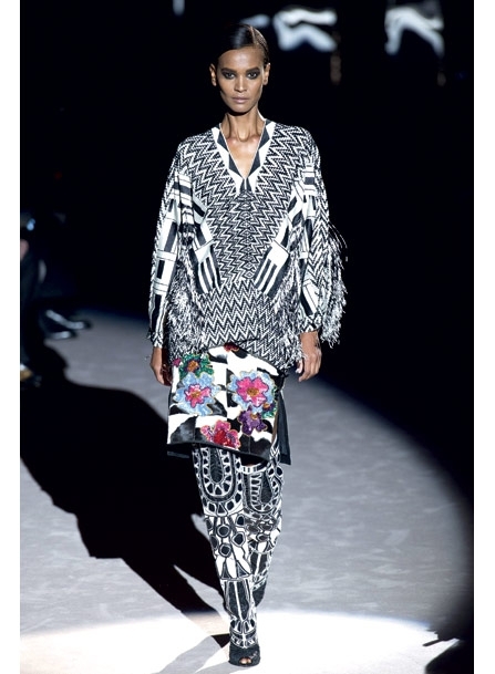 أراد فورد تقديم مجموعة متعددة الثقافات، فجاءت النتيجة مزيجاً من التأثيرات أفضى إلى تطرف واضح. رقع أحادية الألوان من الفرو والجلد تم تنسيقها مع ريش طويل متدلٍ. ثمة سترات مزينة بشراريب، وأنماط متعرجة وبلوزات مع قلنوسات مزينة بأزهار معقدة من الخرز. نقوش الفهد ظهرت على معطف له حواف من الفرو، وسراويل فضفاضة وسترات فرو اشتملت أيضاً على رقع من فرو المينك. الفقاعات المترنحة كانت رمزاً متكرراً على السترات القصيرة الضيقة وعلى الجهة الأمامية للتنانير الضيقة المخرمة. أما فساتين الحرير الضيقة، فأعطت طابعاً من البساطة الراقية.
