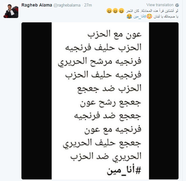 وأضاف: "يا ضيعانك يا لبنان" مع وسم انا_مين، في إشارة إلى تداخل الأوراق في الوضع السياسي اللبناني.