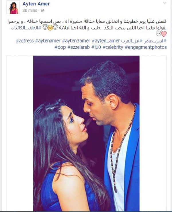 لأول مرة تكشف الفنانة آيتن عامر عن خناقة وقعت بينها وبين زوجها مدير التصوير السينمائي محمد عز العرب يوم الخطوبة، آيتن نشرت صورة من حفلة الخطوبة على صفتحها على موقع فايسبوك.