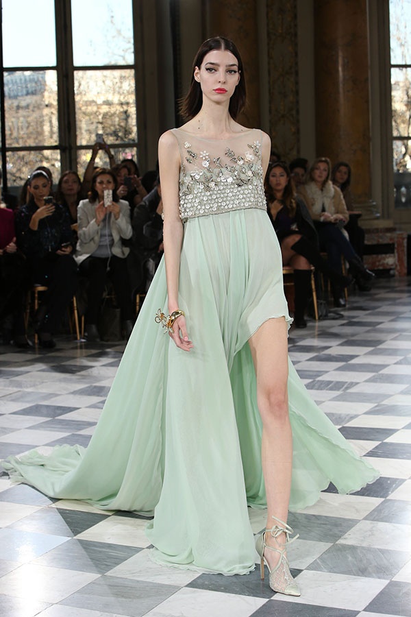 حافظت المجموعة الجديدة على طابع الدار المستوحى دوماً من معالم الطبيعة الجميلة فجاءت تصاميمها بزخرفات نباتيّة تفتّحت على تطريزات لامعة وباقات من الكريستال البرّاق وحبّات لؤلؤ خامدة ومشرقة زيّنت القصّات العصريّة الراقية.