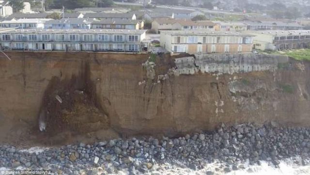 ونقلت صحيفة "ديلي ميل" البريطانية مقطع فيديو تم تسجيله بواسطة طائرة من دون طيار يظهر المنحدرات وتصدع الهضبة أسفل المباني السكنية التي على حافة المنحدر، وسقوط أجزاء صخرية في المحيط.