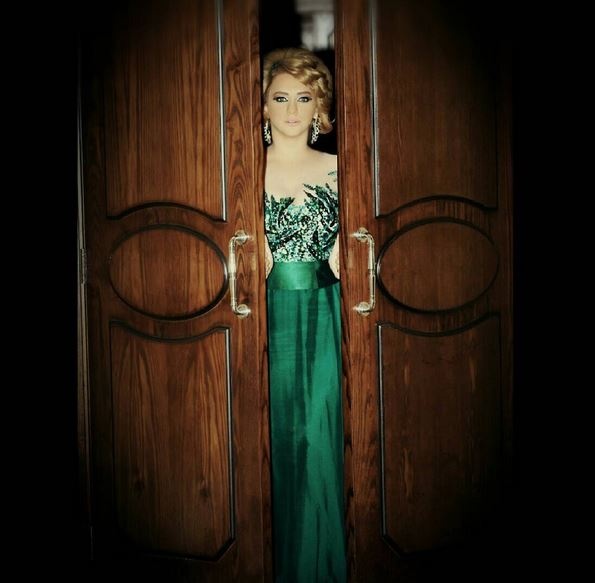 اختارت فواخرجي فستاناً أخضر طويل من الساتان والدانتيل من تصميم المصمم السوري فريد أبو دراع واعتنى بمكياجها مجيد زهر.