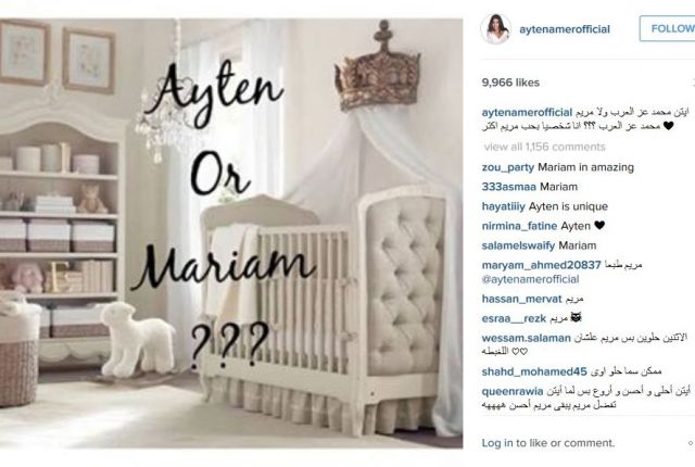 من ناحية أخرى تفاضل آيتن بين أكثر من اسم لابنتها، وإن كانت قد أعلنت أن اسم مريم هو الأقرب لقلبها.