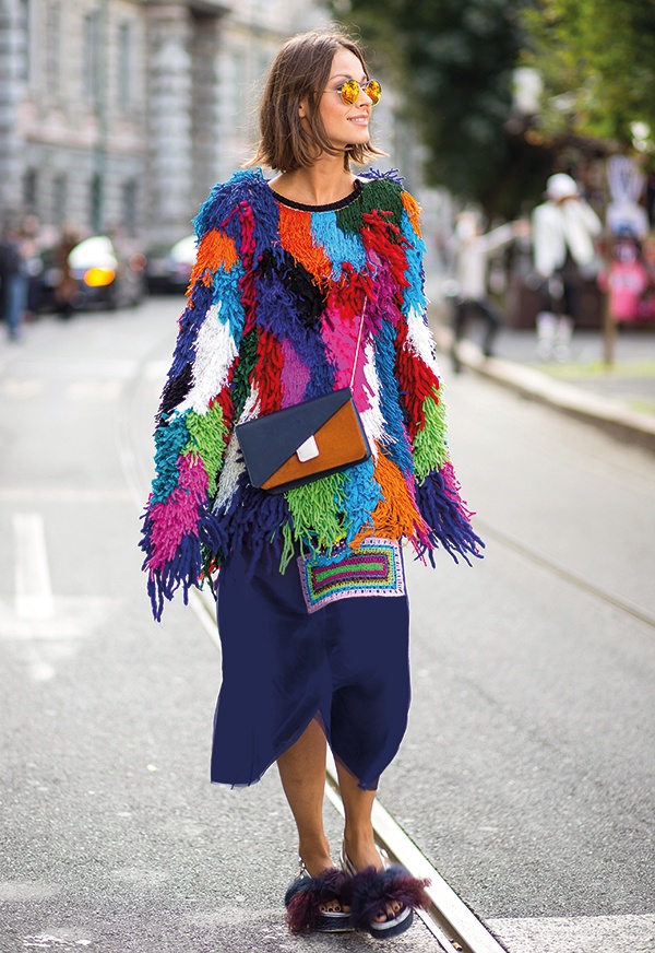 غمرت ألوان قوس قزح أزياء عاشقات الموضة وتحولت شوارع الموضة الى عالم من الألوان. نعم لون واحد لن يكفي، لذا اعتمدي طريقة دمج الألوان بطريقة فنية ولا تترددي.