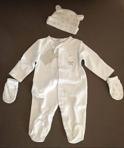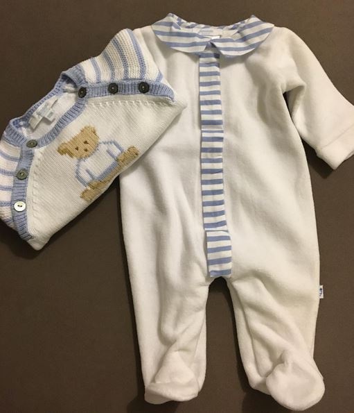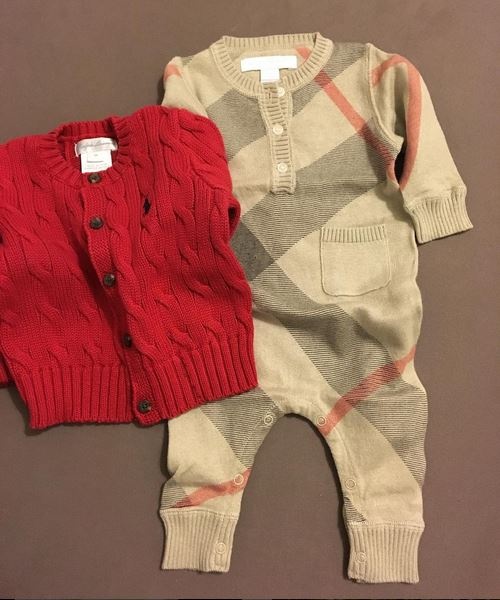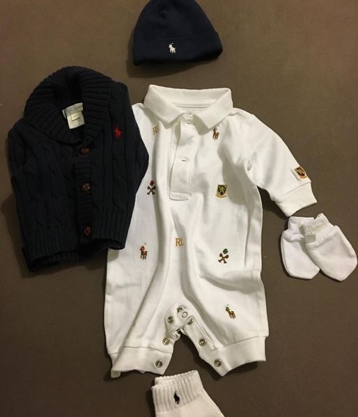 وعرضت ميريام أزياء طفلها الذي سيرتدي من أجود وأرقى الماركات، وتنوعت الملابس بألوان مختلفة بين الرمادي والأزرق والأحمر والكحلي.