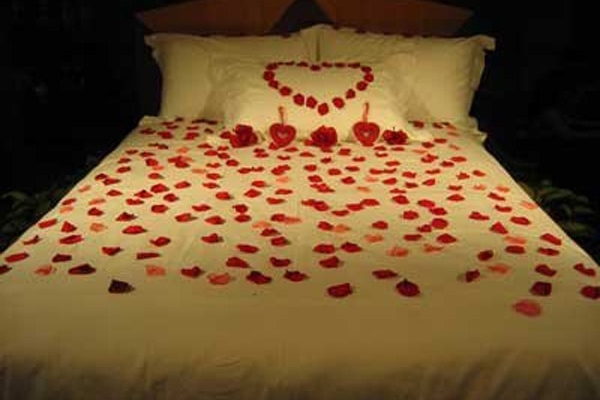 للمناسبة: نثر بتلات ورد على السرير، عقد من الورود، سلة من الورود تصل إلى المكتب.