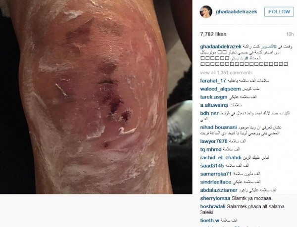 ونشرت غادة، صورة عبر حسابها على "إنستغرام" توضح من خلالها بعض الإصابات التي لحقت بها.