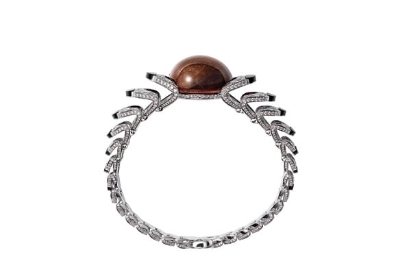 سوار قوي تبرز فيه نقوش الحمار الوحشي التي تحاكي روعة جلد الزيبرا الحقيقي. شكل إفريقي تقليدي، ورمز حيواني يحاكي جوهر كارتييه، زادته الدار تألقاً بفضل حرفيتها وترصيفها المعقد للخطوط غير المنتظمة المصنوعة من الأونيكس وشبكات من الماسات اللامعة التي تم تثبيتها واحدة تلو الأخرى كقطع أحجية.