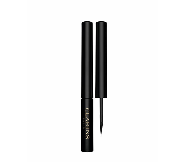 ● ارسمي جذور الرموش العليا بالكحل المائي الأسود Clarins Intense Black Liner ومدّي طرف الخط المرسوم خارج حدود العين بقليل، ثم حدّدي الجفن الداخلي للعين بقلم الكحل الأبيض Wow by Wojooh Khol Design Waterproof Eye Pencil no.115 in Lulu's Light.